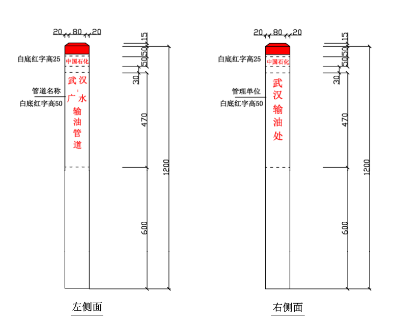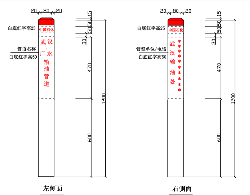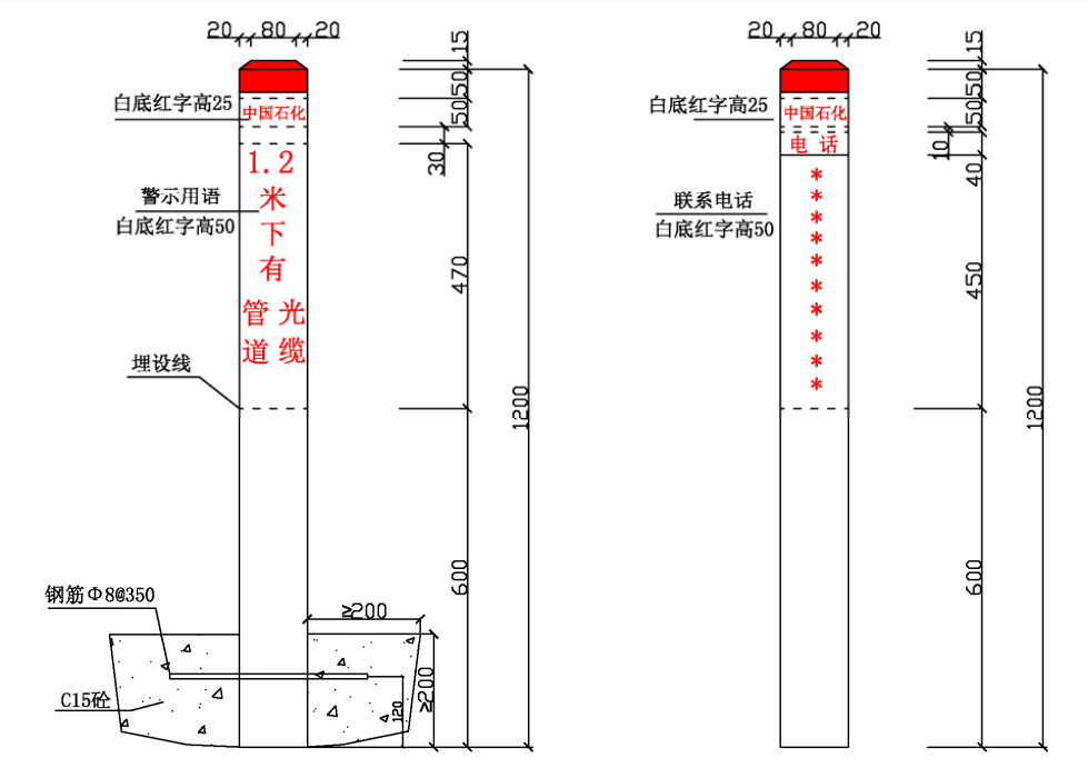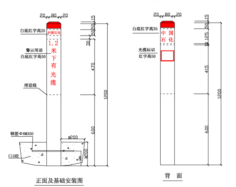 ⑴ 加密樁/通信標識均標注中國石化名稱、管道名稱、警示用語、管理單位和聯系電話。