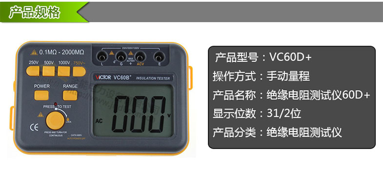 勝利絕緣電阻測試儀VC60D+